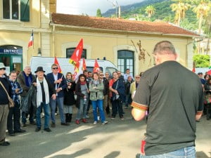 Un centaine des personnes s’étaient réunis devant la Gare de Menton Garavan à l’appel de la CGT – FSU – Solidaires – MRAP 06 – CIMADES – RESF – Agir contre le racisme