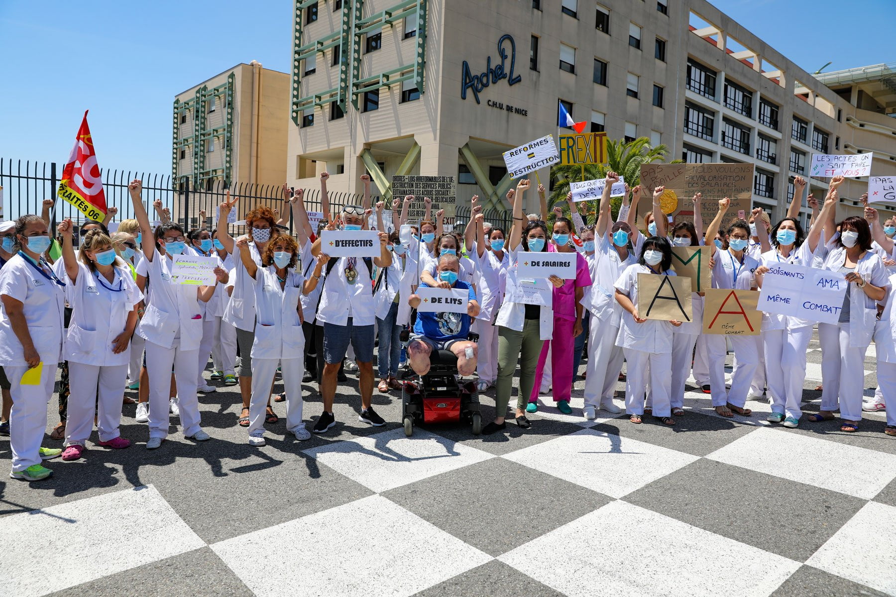 La CGT sera reçue par le ministre jeudi 17 février 2022 lors de sa venue et ne manquera pas de lui exprimer nos revendications. Elle exigera que des moyens matériels et humains soient mis en place immédiatement au CHU de Nice .