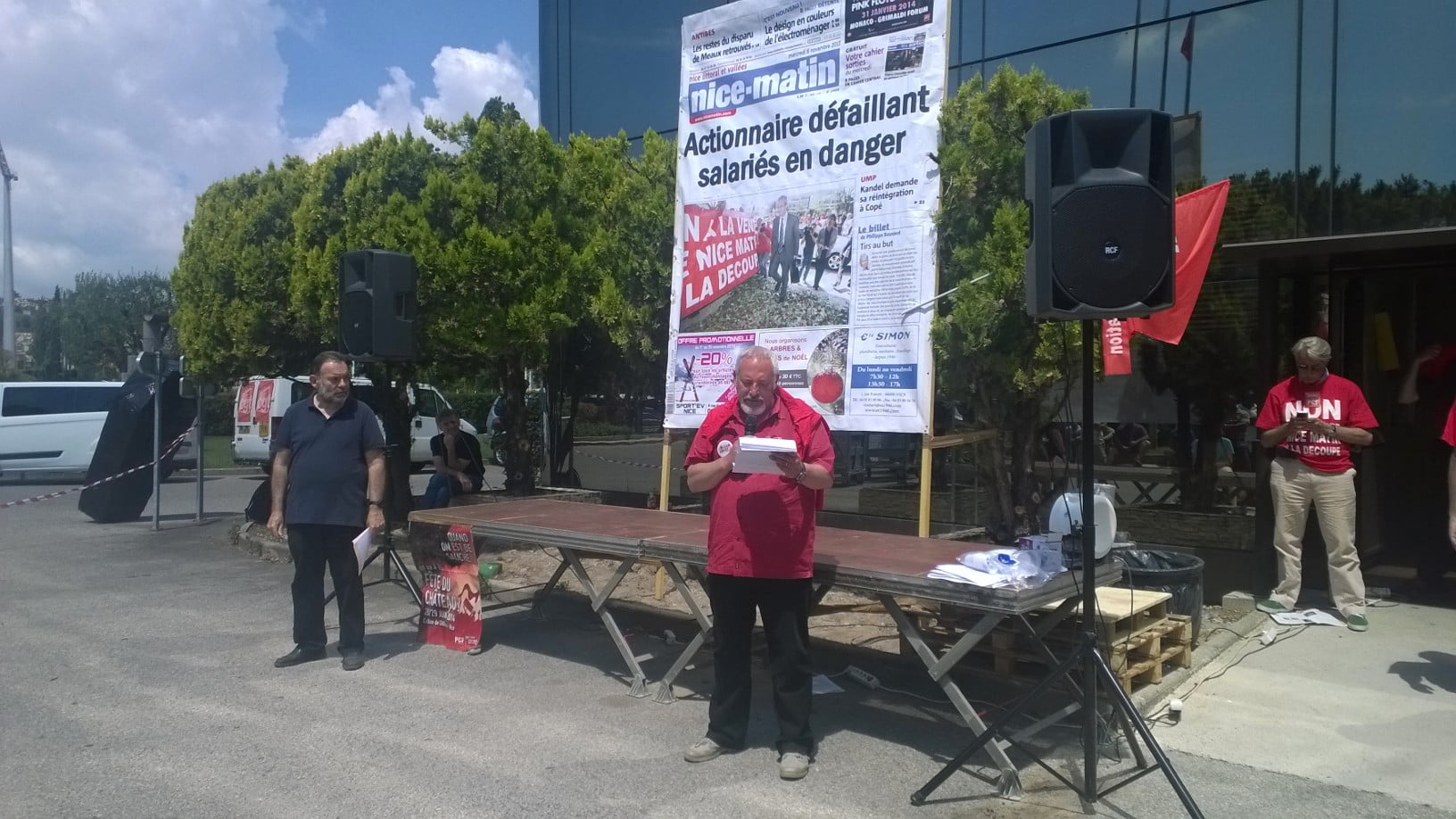 Le secrétaire de la fédération FILPAC CGT Marc Peyrade est venu soutenir les salariés de Nice-Matin lors du meeting de la presse dans les locaux du journal le 27 Juin 2014.