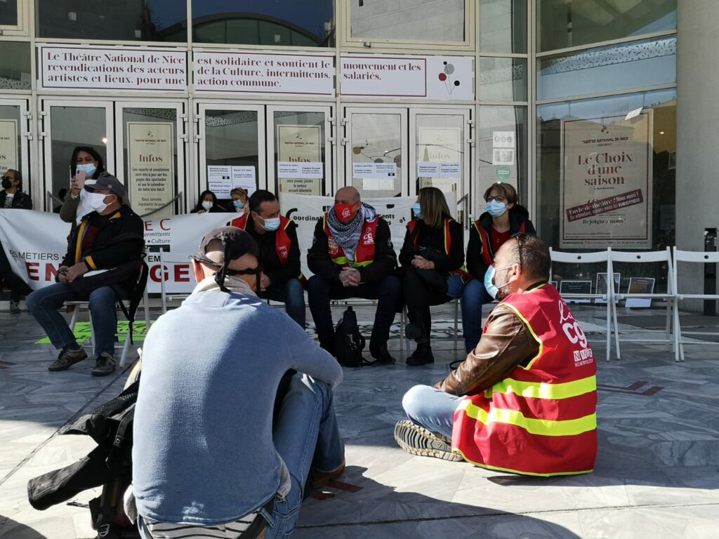 Le Théâtre de Nice est occupé ce lundi 15 Mars et répond solidairement à l’Appel de l’Odeon , occupé depuis le 6 Mars ! 23 Théâtres occupés à ce jour pour la réouverture de la Culture, du Spectacle, du Cinéma! La directrice du Théâtre de Nice a changé d’avis et de ton méprisant, mal tombé, avec la CGT !