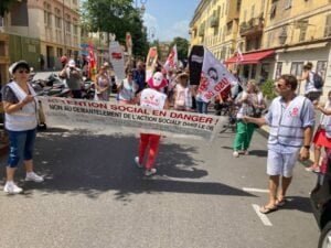 Le 17 juin 2022 une centaine de professionnel-le-s du secteur de l’action sociale et médico-social se sont rassemblé-e-s pour une manifestation de la place Garibaldi jusqu’à la place de l’ile de beauté à Nice. Les personnels de l’ADAPEI, L’ADSEA, le foyer de l’enfance, Les MSD, Montjoie, les PEP 06, l’UGECAM et d’autres encore étaient présents …