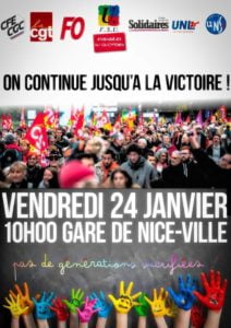 Vendredi 24 Janvier, ce sont 360 manifestations qui ont eu lieu partout dans le pays, rassemblant plus d’un million de personnes. A Nice, la manifestation a réuni plus de 10 000 Manifestants. Après plus de 50 jours de mobilisation, les salaré.es, nombreuses et nombreux, ont réaffirmé leur rejet de cette réforme. Au côté des cheminots, …