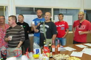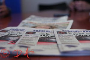 Pot avec le syndicat FILPAC CGT dans les locaux de Nice-Matin suivi d’une longue interview avec un journaliste (voir édition de dimanche 17 Mai)